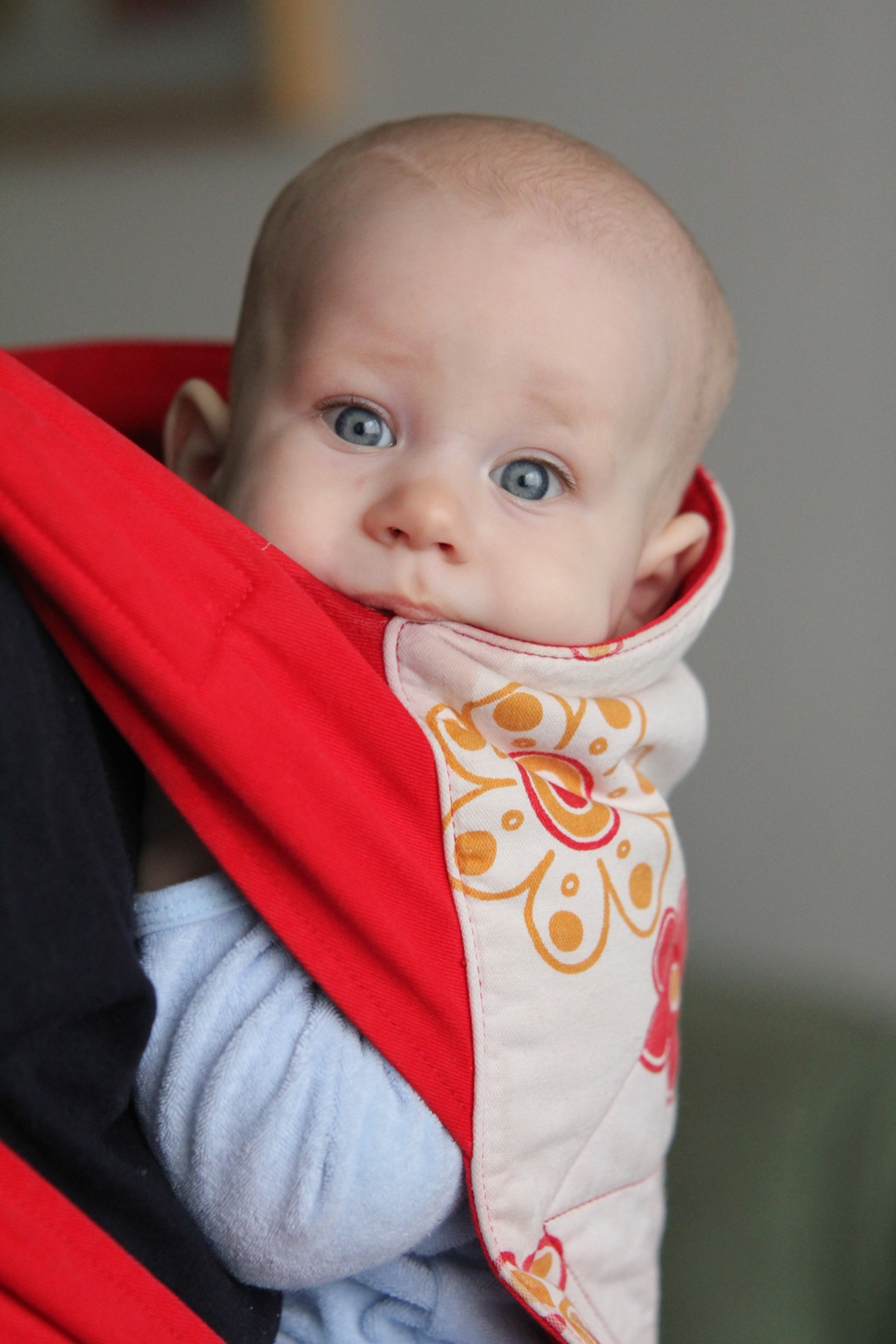 Sajnos viszont a hiszti is egyre gyakoribb vendég nálunk. Biztos vagyok benne, hogy nem tesz jót, hogy nem tudunk kimenni annyit a levegőre és hogy beteg a fél bölcsi, és nem pihennek rendesen. Meg gondolom, a dackorszak is elérkezhetett. Előfordult már, hogy az utcán térdre vetette magát és hörögve sírt. Gyakran megüt engem, ha nem teljesítek neki valamit, borzasztóan türelmetlen, ha azonnal nem kap meg valamit, azonnal sír, könnyekkel. Mindannyiunknak elég nehéz ez a helyzet, mert mindenki fáradt, rengeteg türelemre és szeretetre van szükség, és persze minőségi időre, amikor nincs mosogatás, takarítás, főzés, egyéb házimunka. Én egyenlőre annyit változtattam, hogy a "béke" érdekében engedek egyébként értelmetlen gondokban, amik nem veszélyesek, pl. 2 kislufival fürdés és elalvás, bugyihurcolászás, ilyesmik. Meg aztán újra elővettem a kendőt, és ha nem kocsival megyünk a bölcsihez, akkor felkötöm Dórit a hátamra. Ettől sokkal nyugodtabb, nekem egyszerűbb, és így nincs kínlódás azon a rettenetesen hosszú 5 percnyi úton, hogy vigyem az ölemben. Na meg persze így több a közelség velem, amiből így raktározhat.